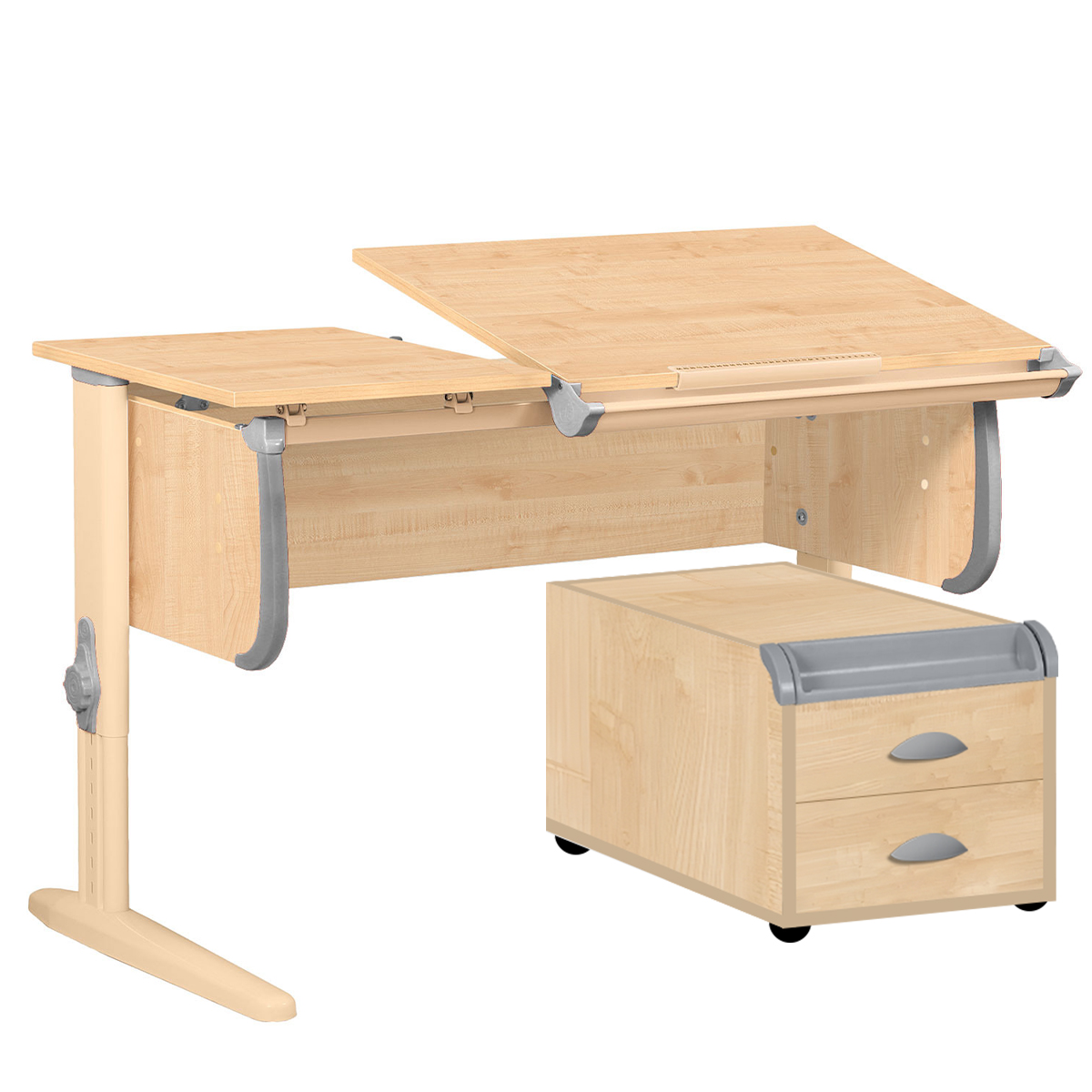 Парта Дэми СУТ-25-03 120 см раздельная с тумбой клен/серый/бежевый с тумбой ТУВ.09