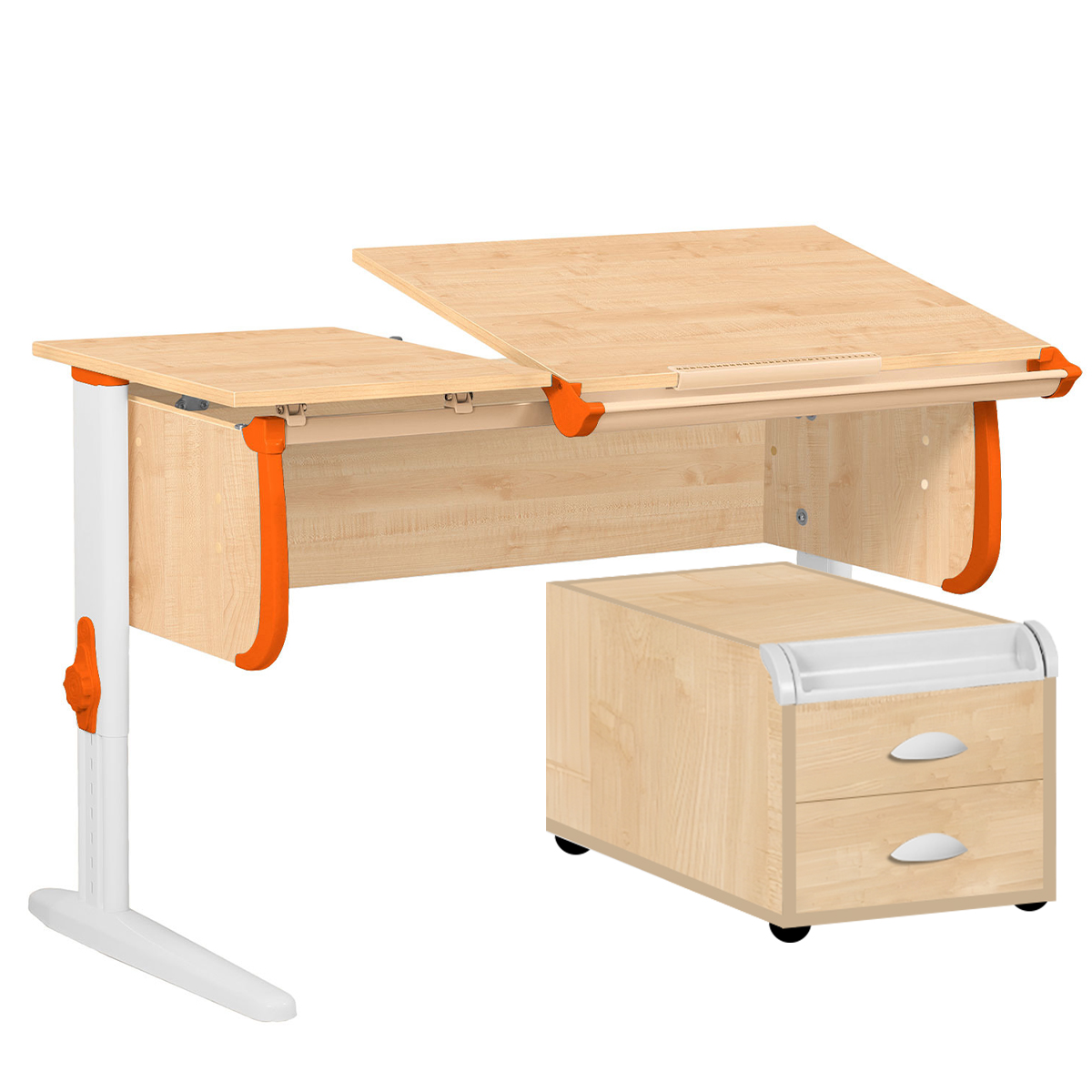 Парта Дэми СУТ-25-03 120 см раздельная с тумбой белый/оранжевый/бежевый с тумбой ТСН 01-01